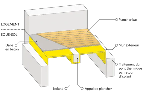 Les sols et planchers bas représentent 10% des déperditions thermique. C’est le 3ème poste de fuite de chaleur, il est donc important de les isoler.