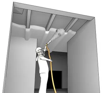 Les techniques sont à peu près similaires que celles de l’isolation par le haut. Cela peut être la fixation, grâce à des chevilles, de panneaux rigides faits d’isolants. Et aussi, la projection (flocage) d’isolant directement en sous-face.