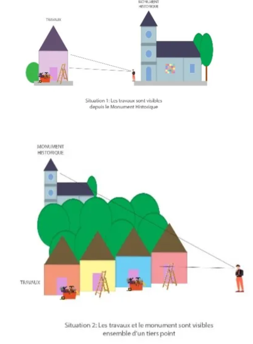 Pour la préservation des abords de monuments historiques, il convient de distinguer s'il y a une co-visibilité ou pas :