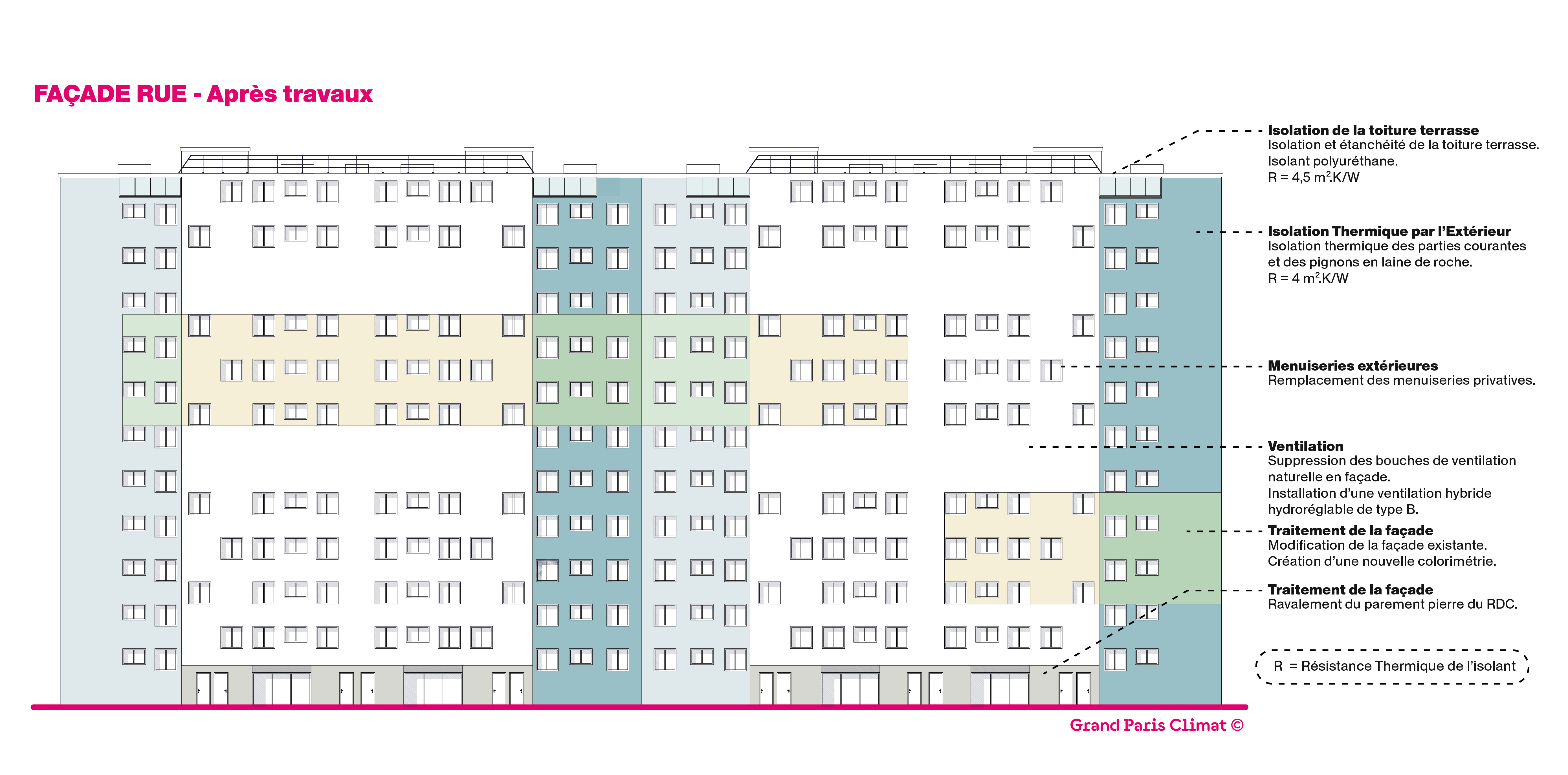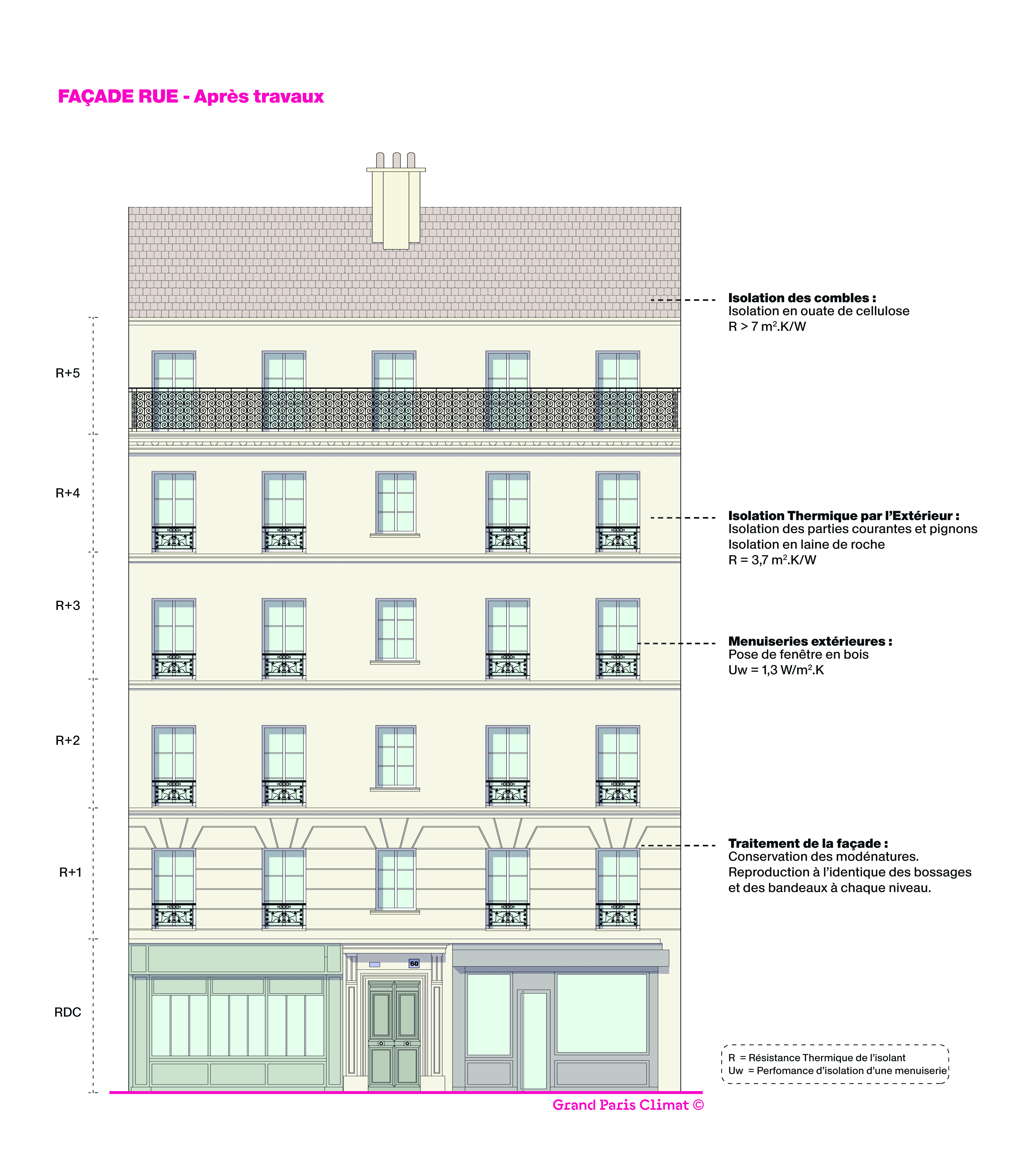 Cette approche répond à un besoin concret des copropriétaires et professionnels : comprendre comment concilier amélioration énergétique et respect du patrimoine architectural. Les schémas techniques permettent de visualiser les transformations et d'identifier les solutions adaptées à des contextes similaires.