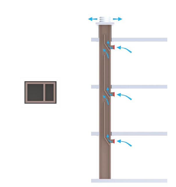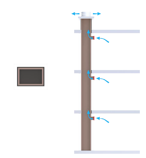 Le tirage thermique est un courant naturel au sein du conduit maçonné du bâtiment créé par la différence de température entre l’intérieur et l’extérieur et la hauteur du conduit maçonné de ventilation.