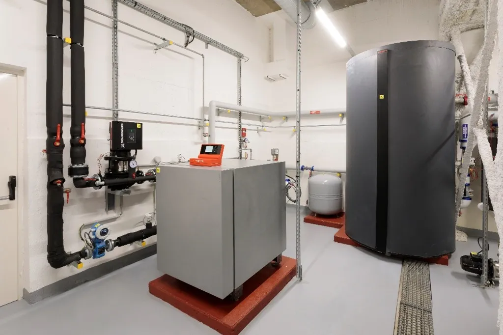 Autre option : utiliser la chaufferie. L’emprise au sol de l’installation est relativement réduite. Comme on le voit sur la photo, une vingtaine de mètres carrés est suffisant.