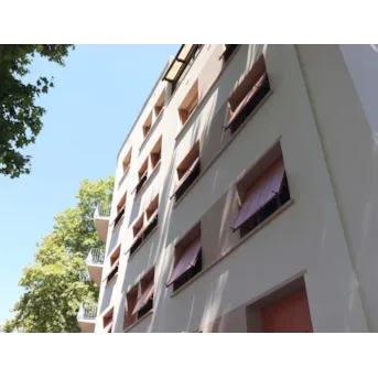 Désireuse d'améliorer le bâti de la résidence, elle a opté pour un programme de travaux ambitieux afin de réduire de moitié sa consommation énergétique. De par sa co-visibilité avec des monuments historiques, elle a également dû prendre en compte des contraintes architecturales et travailler en collaboration avec les architectes des batiments de France, notamment sur la colorimétrie et les modénatures de la façade.