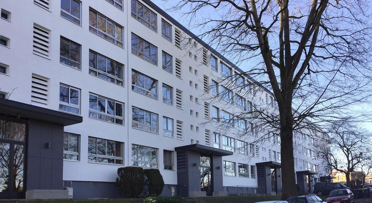 La réduction des consommations énergétiques ne pouvait s’imaginer sans préserver l’architecture des bâtiments: l’emploi de techniques innovantes (injection d’isolant dans les lames d’air et mise en oeuvre de matelas d’aérogels) a permis de réduire les consommations de 40% tout en respectant l’architecture des façades.