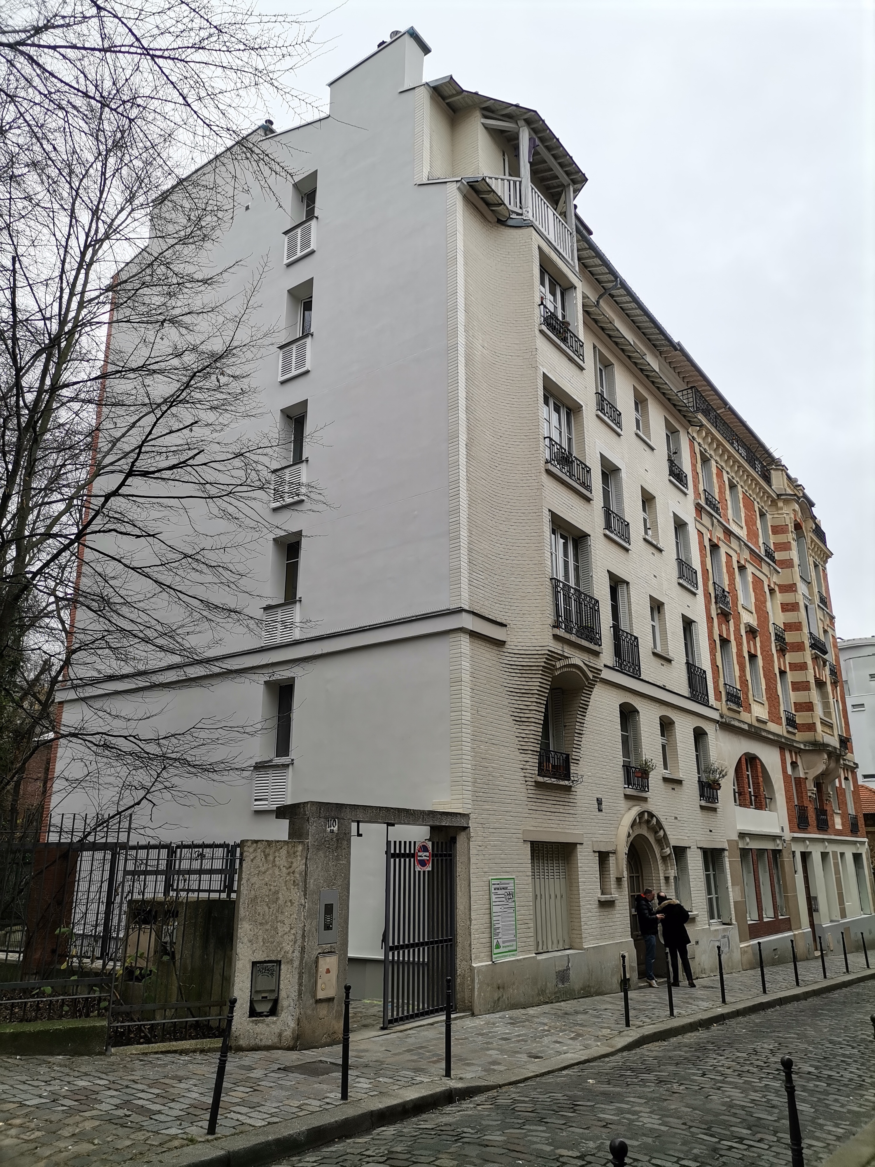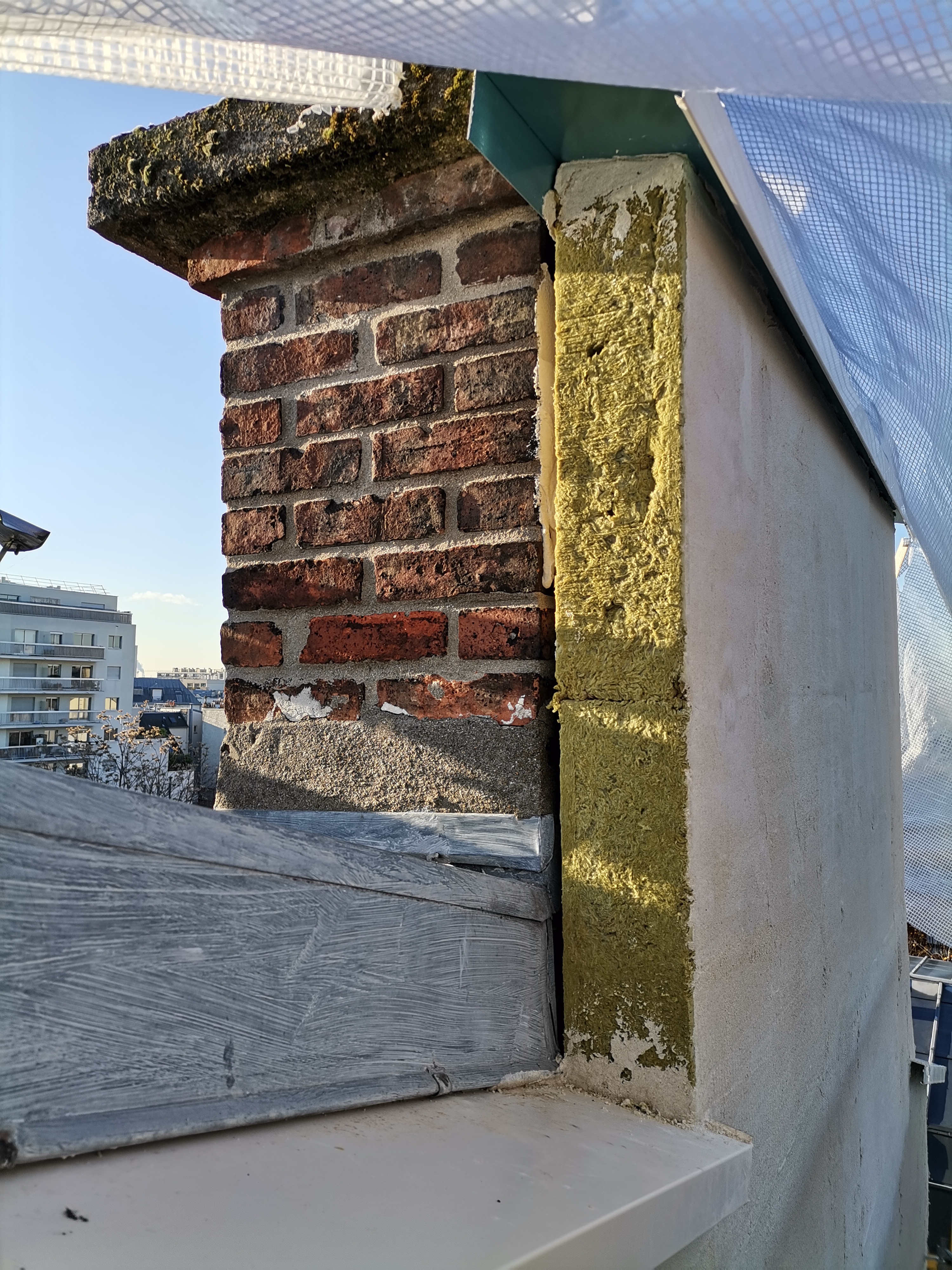 La ville de Paris souhaitant initialement laisser le pignon en pierre meulière à l’état brut, un accord a été trouvé pour une isolation extérieure avec une intervention discrète misant sur une continuité de ton avec la façade principale, une continuité des bandeaux, la conservation de l’esthétique des garde-mangers.