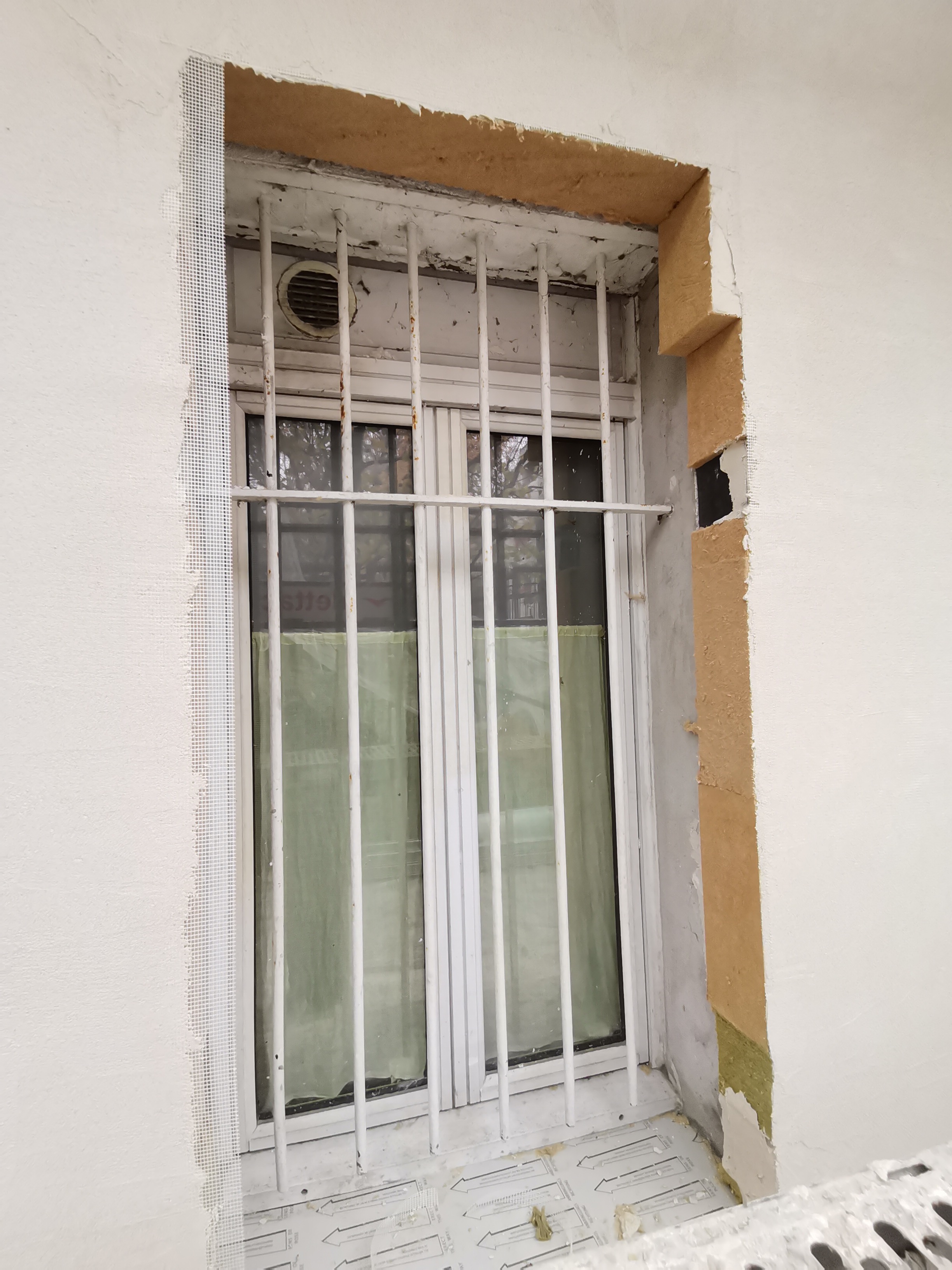 L'enduit ciment a été pioché et remplacé par de la chaux pouzzolanique. Le mur a été isolé en fibre de bois de 15 cm, avec des recoupements de niveau et des souches, isolées en laine de roche (sécurité incendie). Les garde-manger sont conservés et isolés par l'intérieur, leurs claire-voie en chêne d'origine sont déportés à l'extérieur de l'isolant.