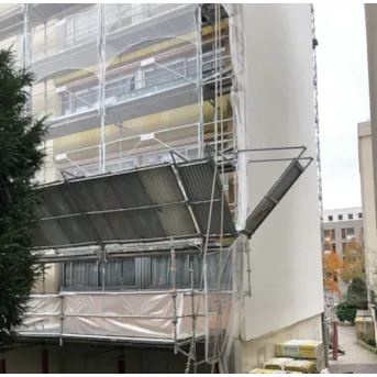 Ravalement et isolation de l'enveloppe : l'isolation des façades par l'extérieur avec traitement des ponts thermiques, l'isolation des planchers bas par soufflage de laine minérale au niveau des caves, l'isolation de la toiture terrasse, le remplacement des menuiseries collectives et de l'intégralité des menuiseries privatives d'origine de la résidence par des menuiseries en aluminium avec rupture de ponts thermiques, la dépose des protections solaires existantes et la mise en place de volets roulants, ont constitué l'essentiel des améliorations proposées sur l'enveloppe des bâtiments.
