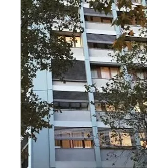 Le projet de rénovation énergétique s’est orienté vers une réécriture architecturale de l’édifice tout en préservant ses qualités intrinsèques. L’Isolation Thermique par l’Extérieur installée sur les nez de dalles ainsi que les poteaux en façade a cherché à éliminer les ponts thermiques, particulièrement importants dans cette typologie architecturale. Le projet a également été l’opportunité de modifier les colorimétries, dans des couleurs plus sobres avec néanmoins un rappel des teintes vertes des allèges existantes sur les poteaux porteurs. Une attention particulière a été apportée aux systèmes d’occultations, avec la pose de brises soleil motorisés à lames orientées, offrant une cohérence de lecture à la façade. La toiture a également été isolée er végétalisée. Les travaux se sont attardés à l’amélioration du confort d’hiver comme d’été des habitants.