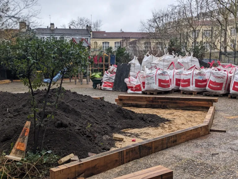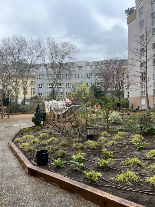 Le projet est né dans un processus participatif. Un 1er diagnostic avait déjà été en 2019 : les espaces verts existants étaient vieillissants, une grande partie de la cour est sur dalle (parkings en dessous).