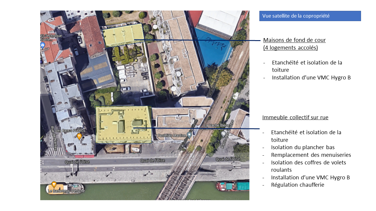 A l’issue de l’audit, la copropriété s’oriente vers un scénario incluant l'isolation de la toiture, le remplacement des menuiseries de l’ensemble des parties privatives ainsi que le remplacement des caissons de volets roulants, l’isolation des planchers bas et la mise en place d'une ventilation hygroréglable.