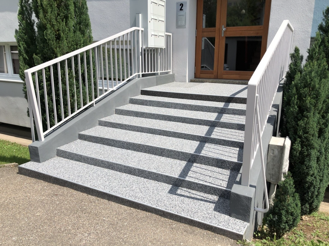 - Une teinte de fond d’enduit claire et contemporaine a été privilégiée.
