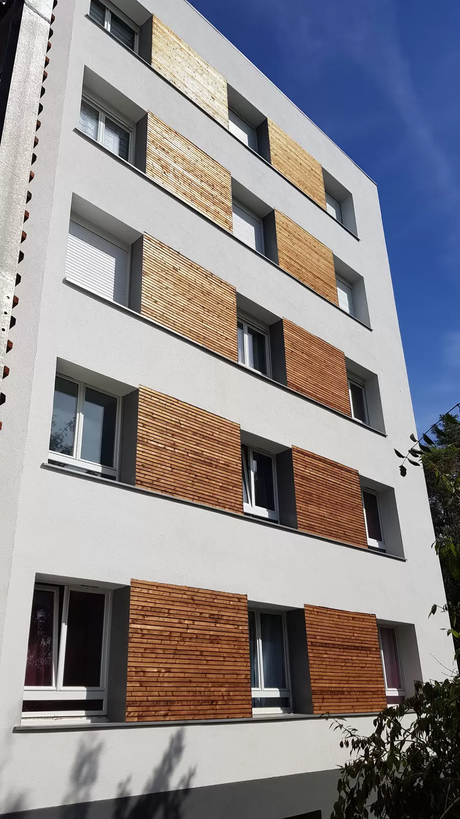 Au-delà de l'aspect thermique, l’un des objectifs de cette réhabilitation était de « casser » l'image d’une architecture de facture simple et économique. Une réflexion a été menée afin de redonner une identité à ce bâtiment, en offrant une image plus chaleureuse. L'approche a été de proposer des prolongements extérieurs aux logements, véritable plus-value aux logements. Ce pari, de prime abord, paraissait inabordable pour les copropriétaires. En effet, ces derniers venaient d’acquérir leurs logements dans le cadre la vente de patrimoine du bailleur SLH. Pouvoir s’offrir un balcon leur paraissait hors de portée. Nous avons proposé une structure collective permettant de recevoir chaque balcon privatif. Chaque résident a donc été libre de choisir de s’offrir (ou non) un balcon. Deux tailles de balcons différentes ont été proposée. Tout ce travail s’est en étroite collaboration avec les services l’UDAP et les services urbanisme.