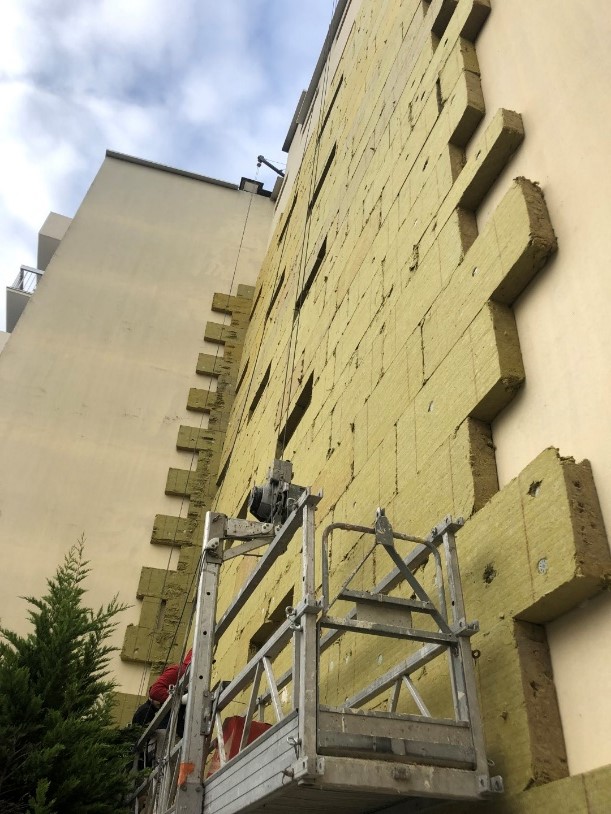 La réalisation de l’ITE a également nécessité le remplacement des réseaux de plomberie en façade ainsi que des garde-corps de balcons et de portes-fenêtres.