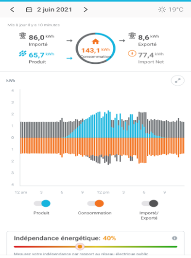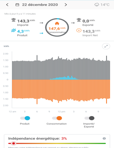 - Avec son smartphone, il est possible de connaître la production d'électricité en temps réel.