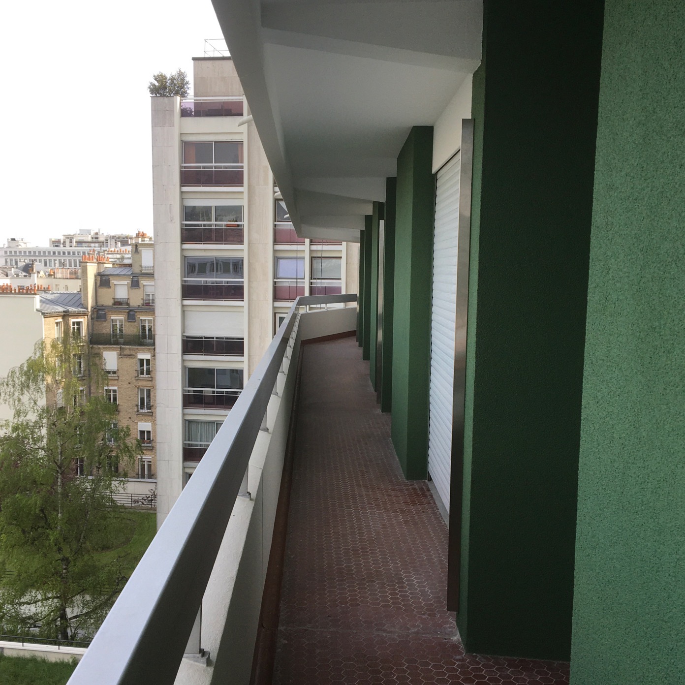Après plusieurs échanges avec les copropriétaires, il a été conclu de ne pas isoler les façades en fond de loggias. La profondeur assez faible des loggias filantes épouse la forme hexagonale du plan et va en se réduisant vers les extrémités de la façade.