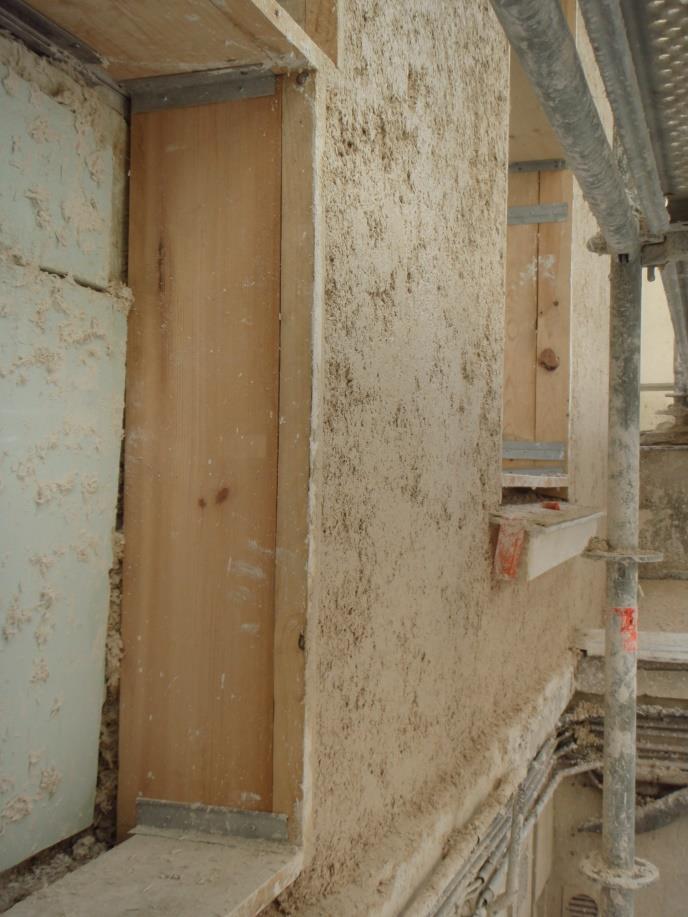 Le programme de travaux a porté essentiellement sur l’isolation à la chaux et au chanvre des façades nord des deux bâtiments, l’isolation des combles perdus ainsi que la réfection de la loge du gardien.
