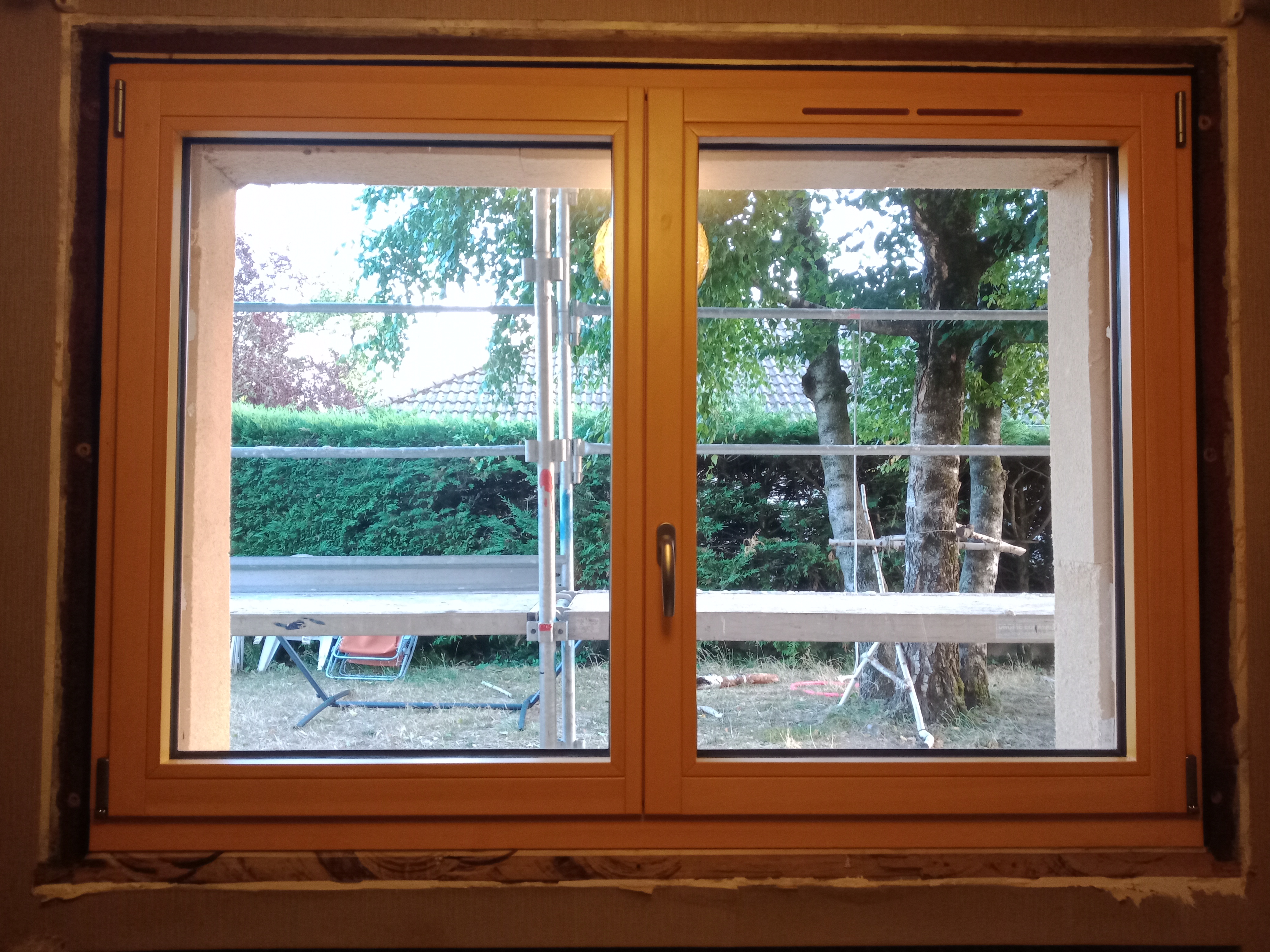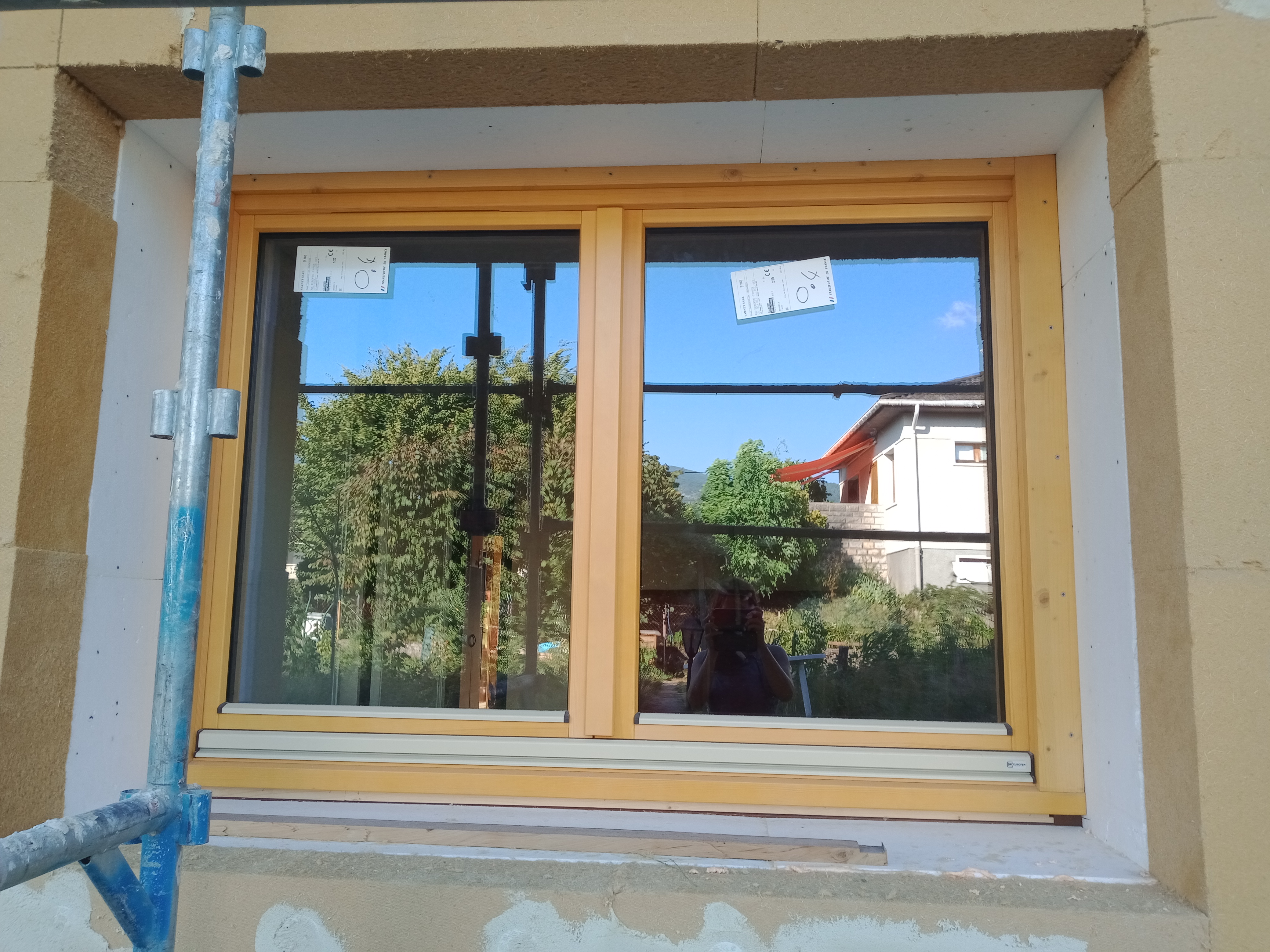 Mise en place de menuiseries en pin silvestre en double-vitrage performant. Uw = 1,3 W/m².K