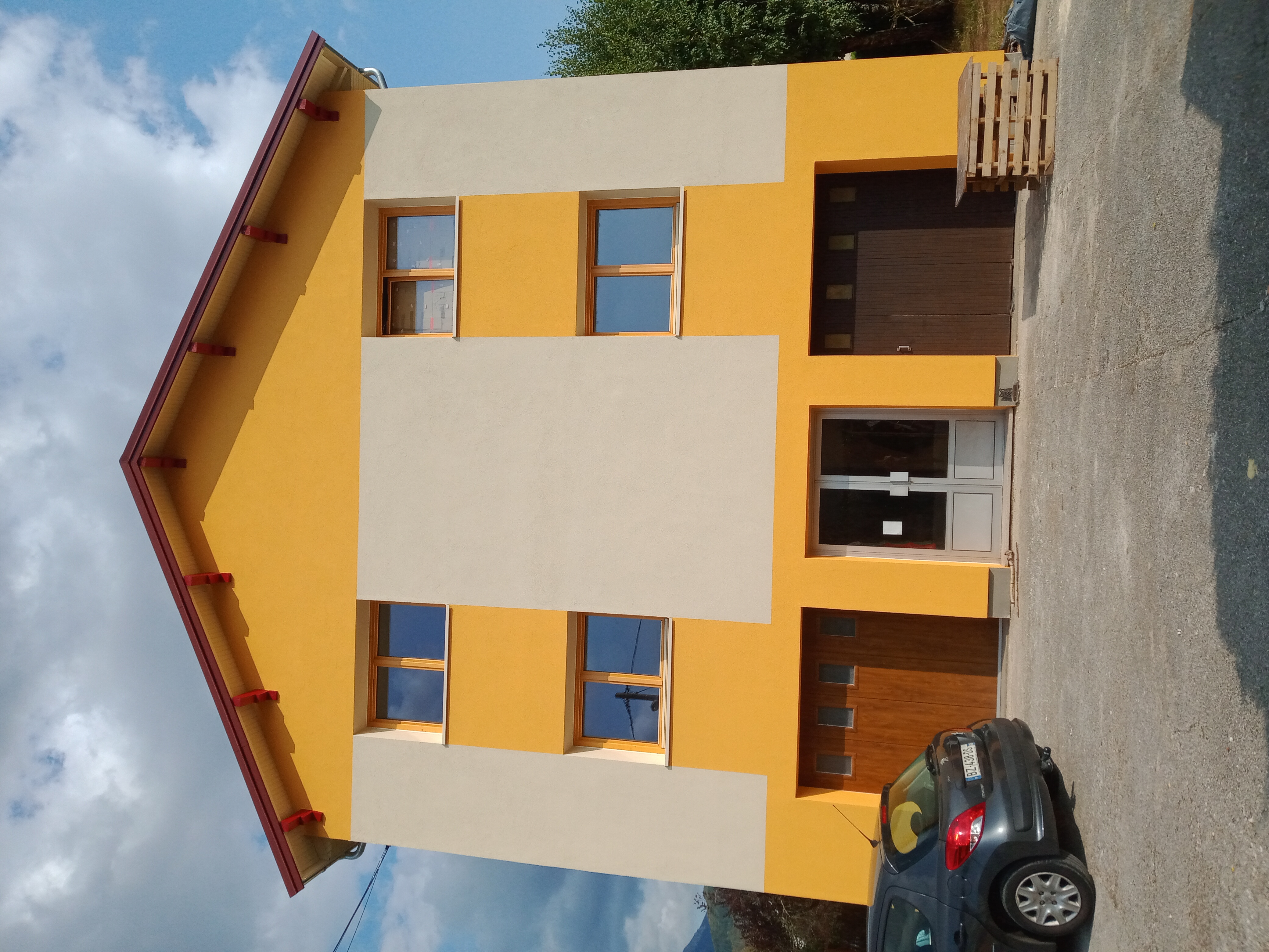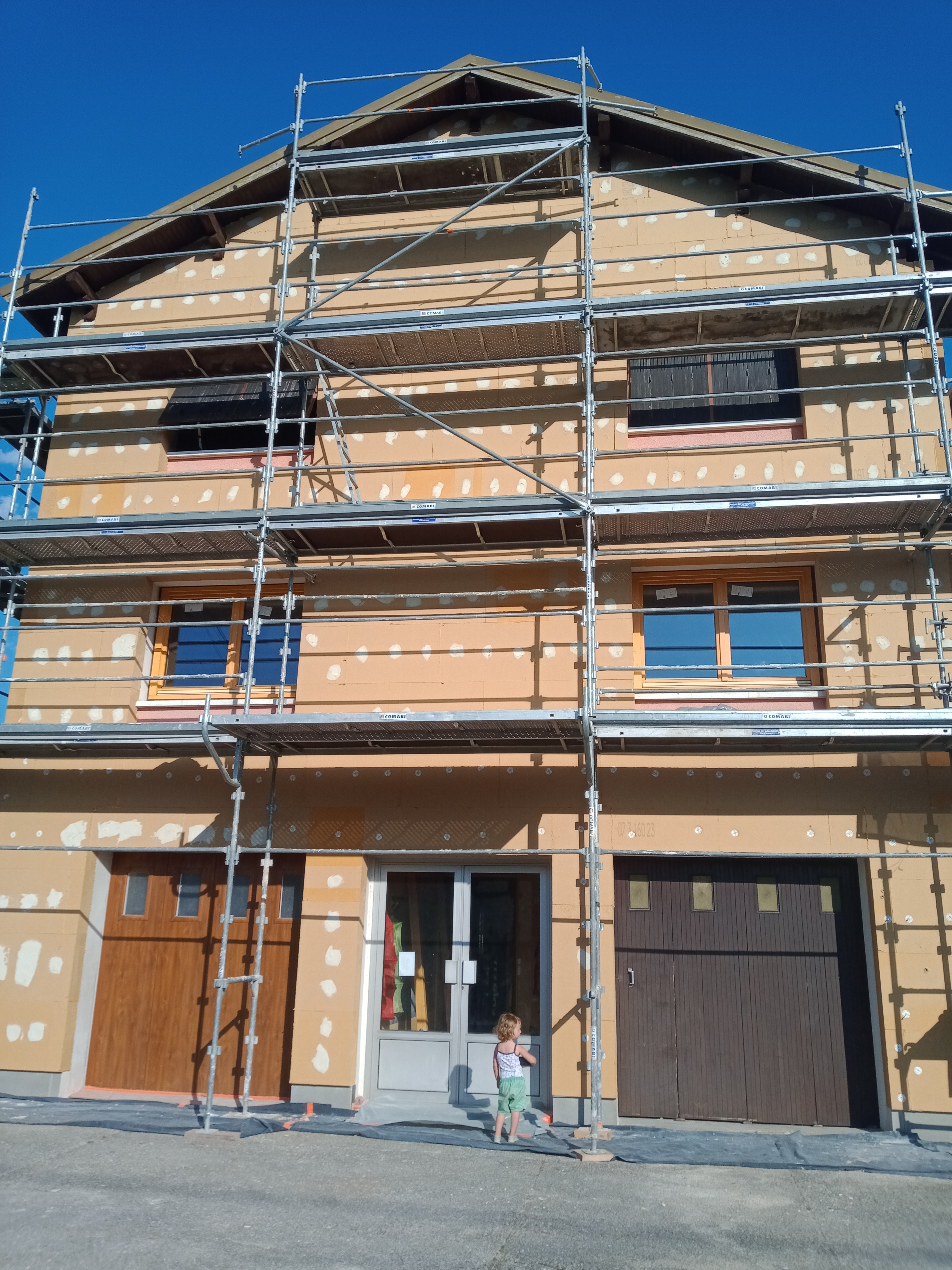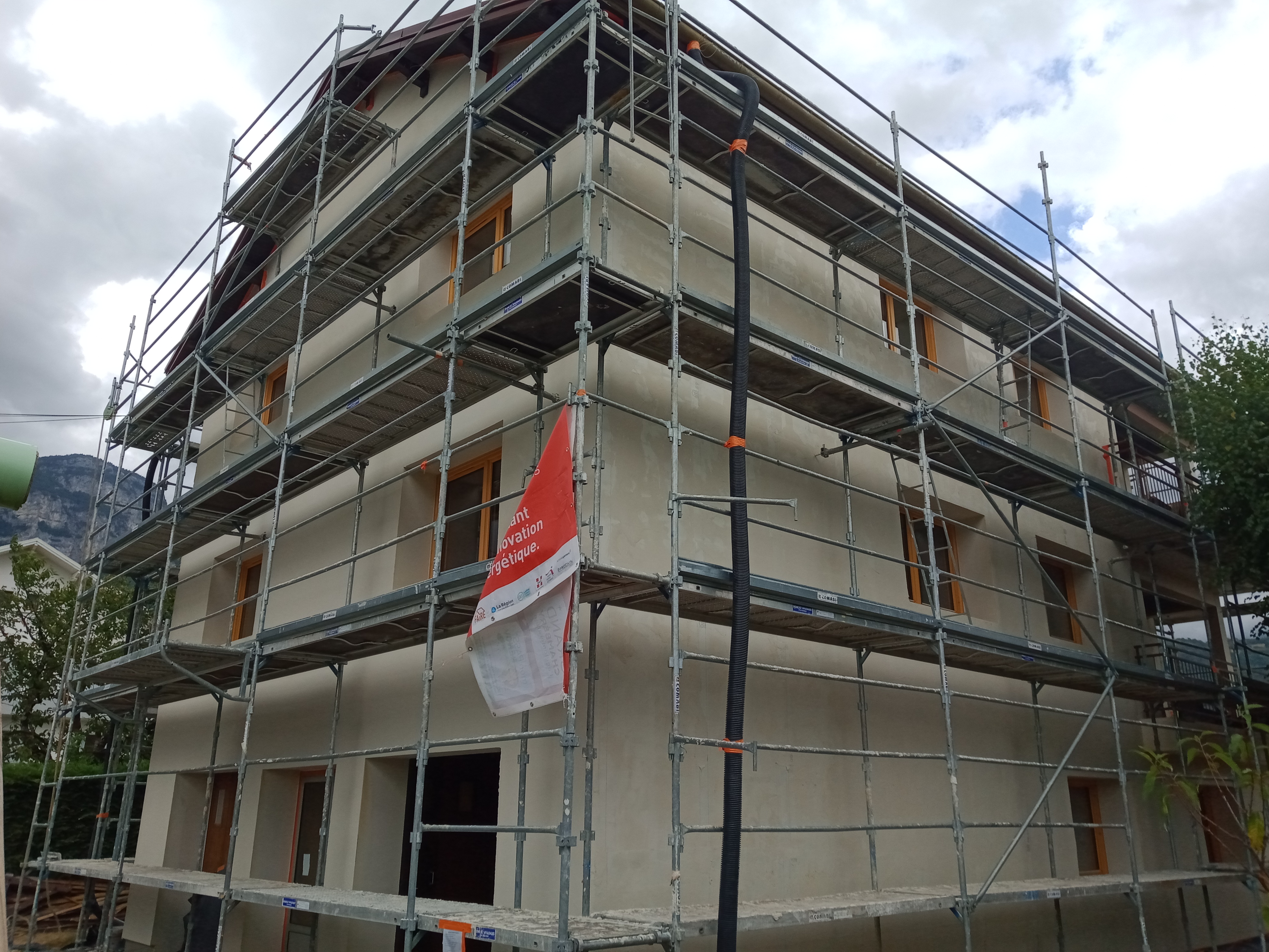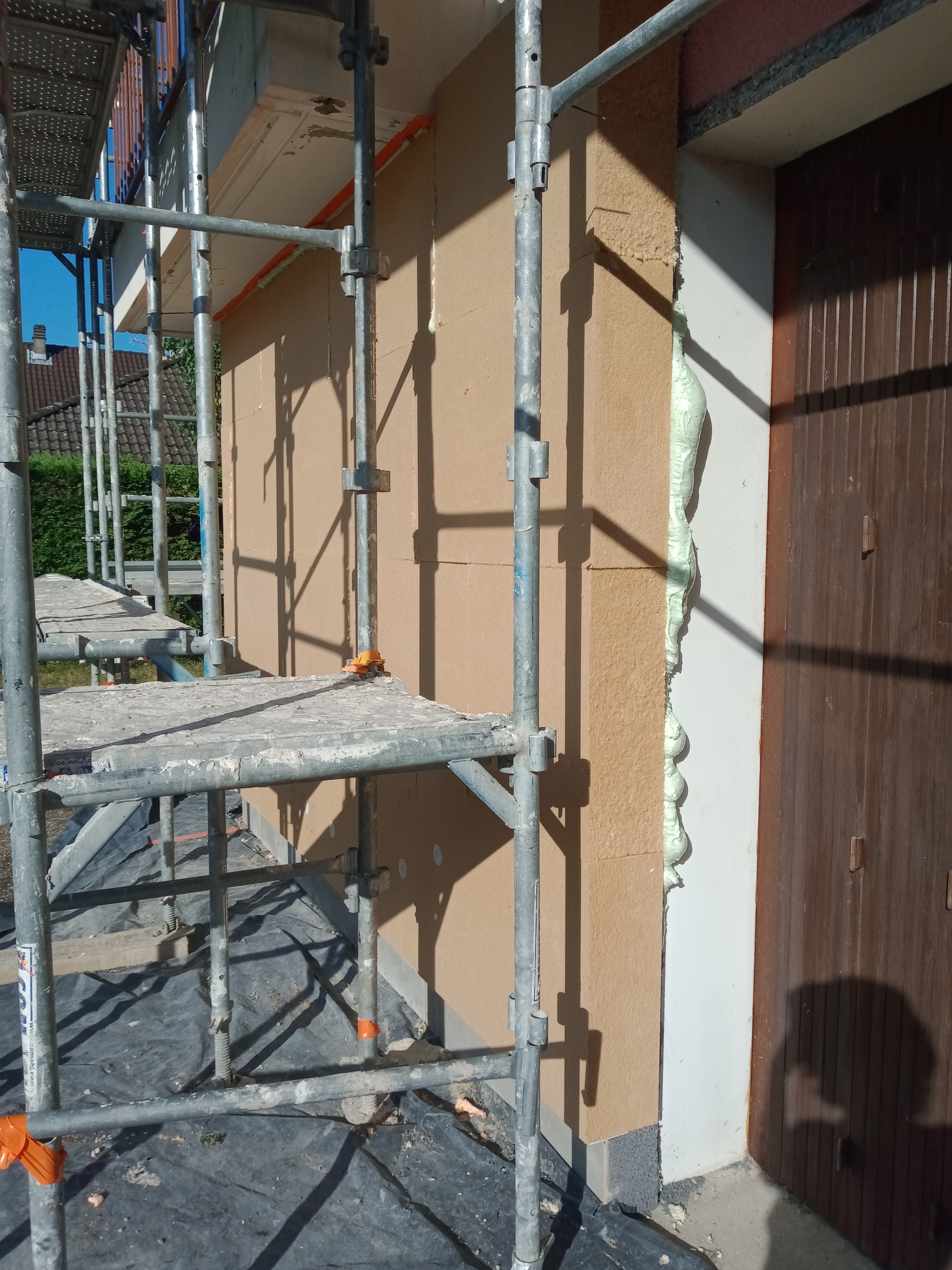 Isolation thermique des façades avec 18 cm de fibre de bois.