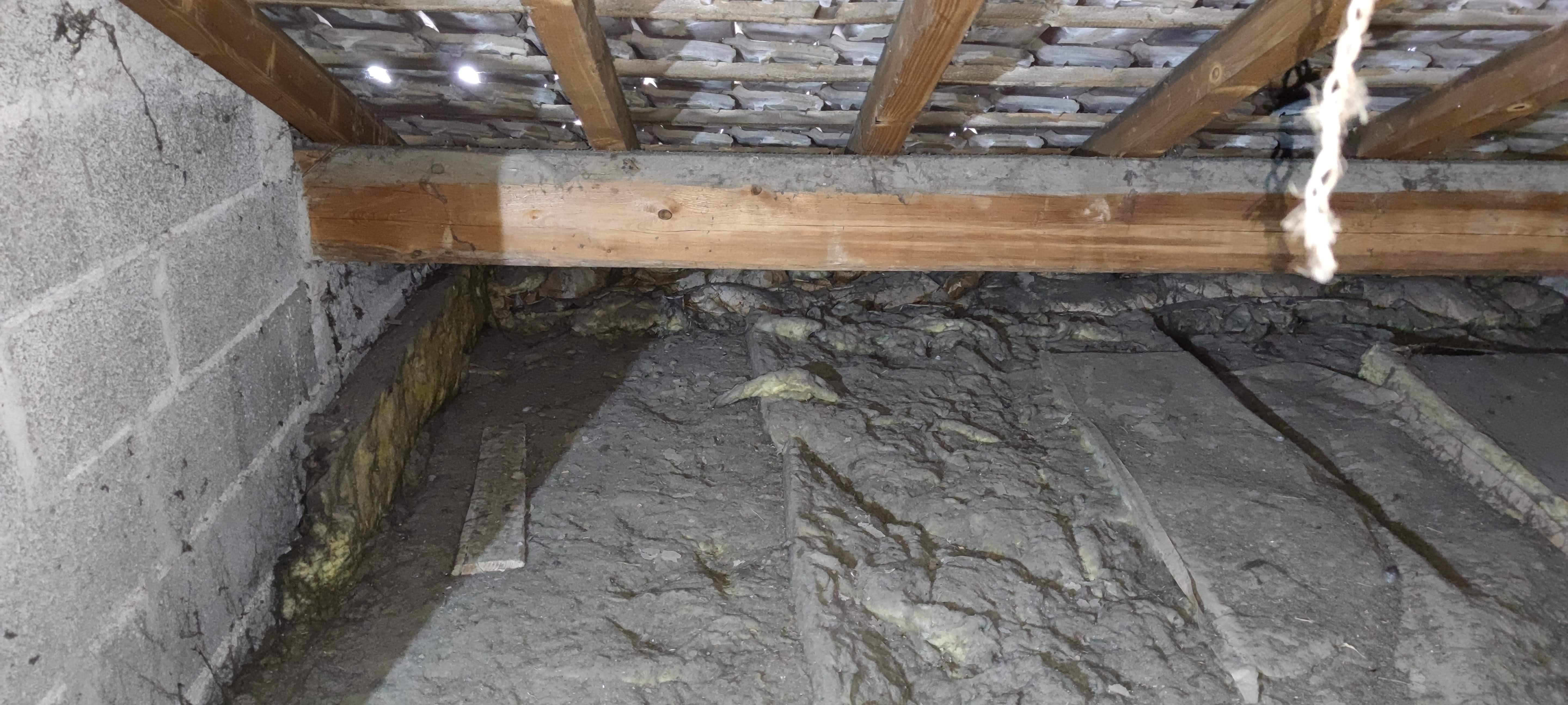 Dépose de l’isolation existante dans les combles.