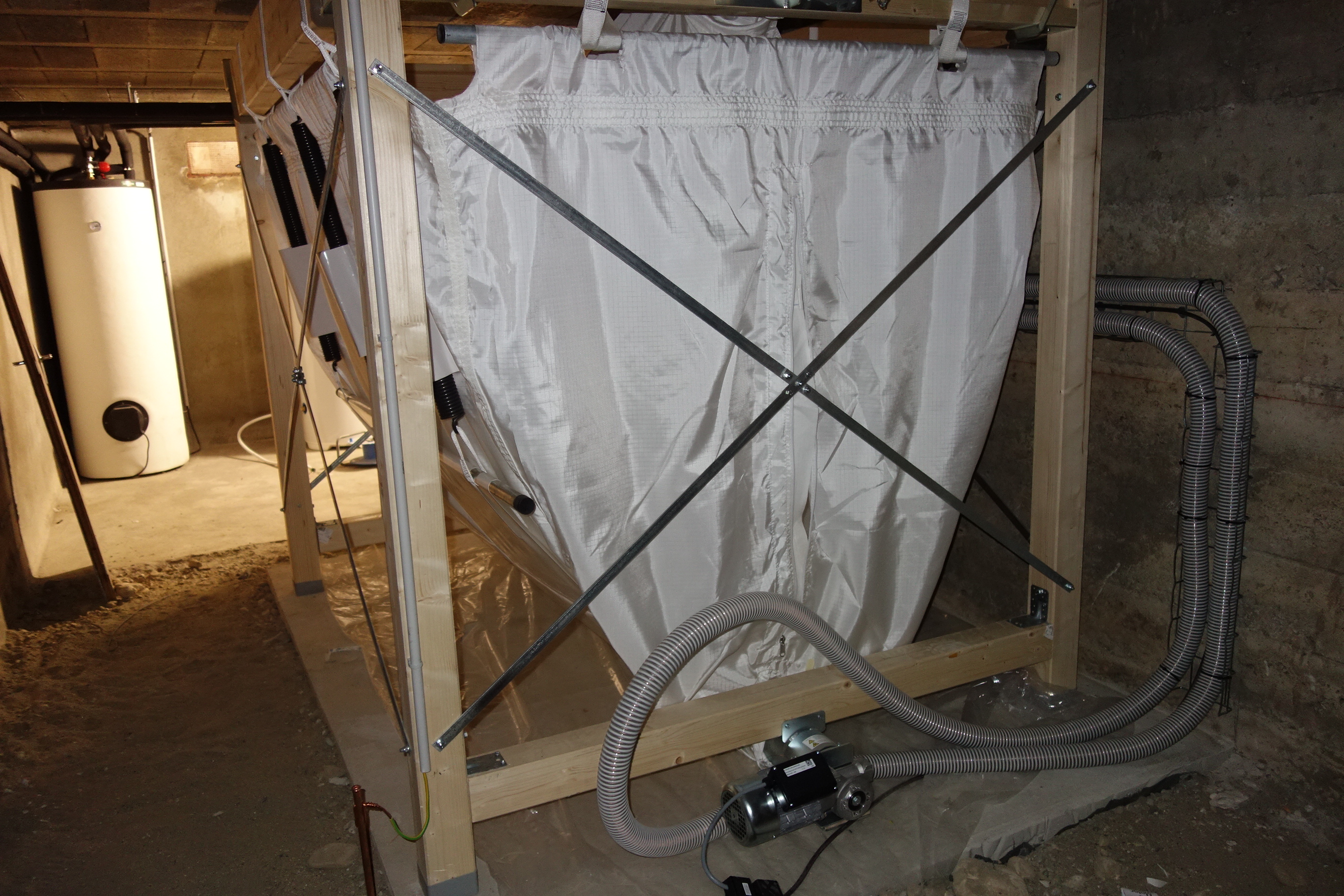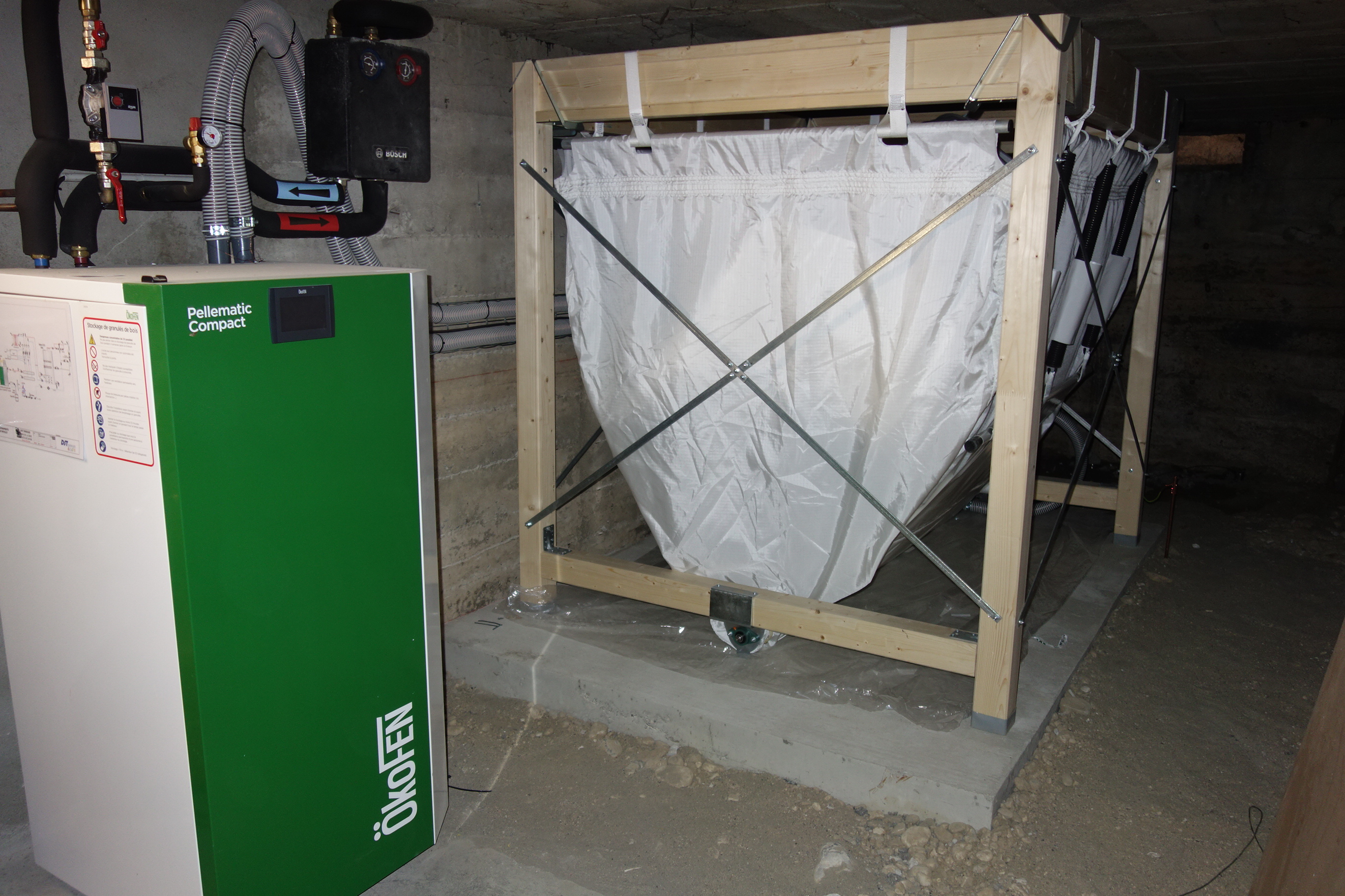 Chauffage : Mise en place d’une chaudière à granulés collective. Pose d’un silo textile de 2,5 tonnes.