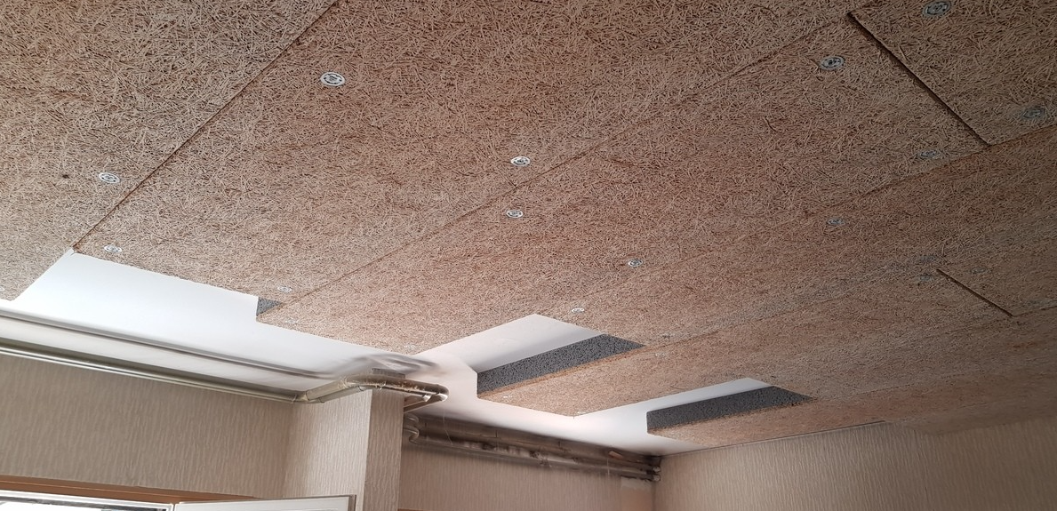 Isolation thermique des planchers bas sur parois extérieures : 110 mm de polystyrène avec fibre de bois