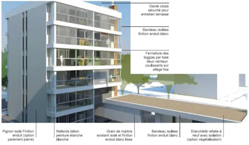 La présence d’amiante dans les joints de menuiseries extérieures et dans la colle de la mosaïque a eu une influence sur la mise en œuvre de l’ITE et sur le remplacement de certaines fenêtres.