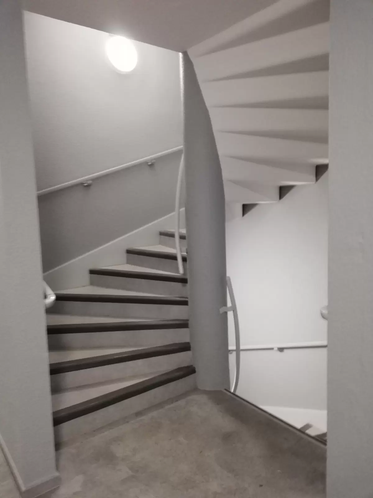 L’accessibilité PMR a été retravaillé dans l’ensemble du projet. Des mains courantes ont été mises en œuvre dans les escaliers des communs et les accès extérieurs ont été améliorées afin d’effacer les marches existantes au profit de pentes adaptées. Les communs ont été entièrement rénovés et une signalétique élégante et lisible a été installées à tous les étages. La rénovation des sols a également permis l’encapsulage de l’amiante existante. Enfin, les éclairages ont été repensés, permettant ainsi l’accessibilité et une meilleure appréciation des espaces pour tous.