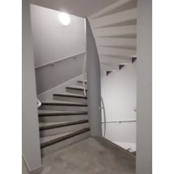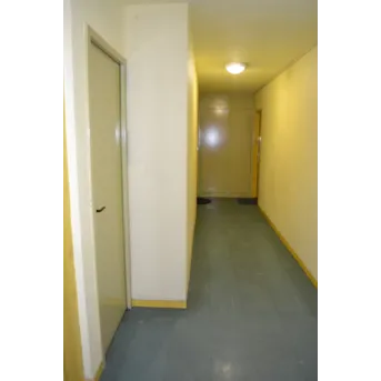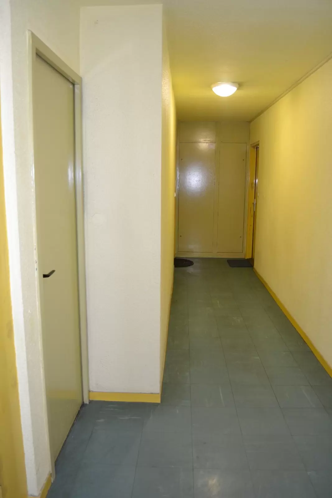 Le vide sanitaire à également été isolé au moyen d’un flocage afin d’éviter les déperditions de la dalle basse. Un travail d’ampleur a été réalisé sur les entrées des différents bâtiments, afin de retrouver une étanchéité à l’air satisfaisante et de limiter les ponts thermiques. Les portes d’entrées ont ainsi été remplacées, les plafonds des entrées ont été changés afin de réaliser une coupure entre l’intérieur et l’extérieur. La ventilation des logements a été revu entièrement. Des VMC hygroréglables ainsi que des entrées d’air dans les menuiseries ont été installées dans l’ensemble des appartements améliorant la qualité de l’air de chacun des logements.
