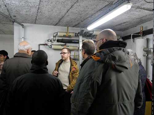 L'Agence Parisienne du Climat (APC) organise régulièrement des visites de site sur des chantiers en cours ou terminés. Leur objectif : présenter des rénovations exemplaires lors d'une visite guidée avec le maître d'oeuvre et les représentants du conseil syndical. Le 24 février 2020, une visite a été organisée au 50 avenue Jean Jaurès en collaboration avec le président du conseil syndical Philippe Mante, le maître d'oeuvre REANOVA, l'accompagnateur OPATB 19 SOLIHA, et le syndic de copropriété SIMMOGEST. Une vingtaine de copropriétaires intéressés ont pu suivre la visite et en apprendre plus sur la rénovation énergétique en copropriété.