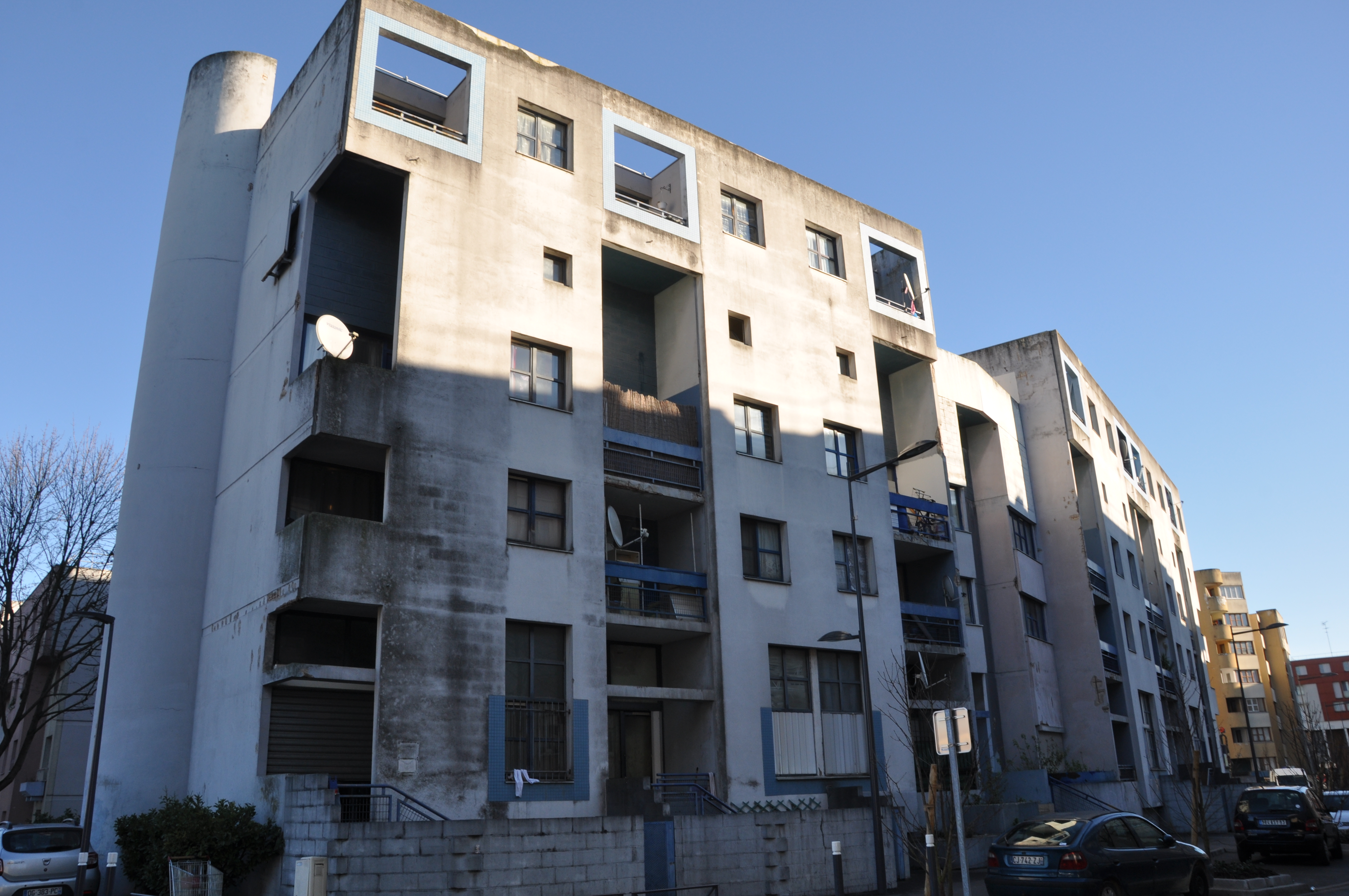 Batiment emblématique de cette période de construction réalisé par l’architecte DEROCHE de l’AUA, il offre aux copropriétaires essentiellement des duplex et triplex organisés autour de 2 coursives intérieures. Très dégradé, le bâtiment fait l'objet d'un plan de sauvegarde permettant à la copropriété de financer en grande partie la rénovation des parties communes, et de plus de la moitiée des logements.