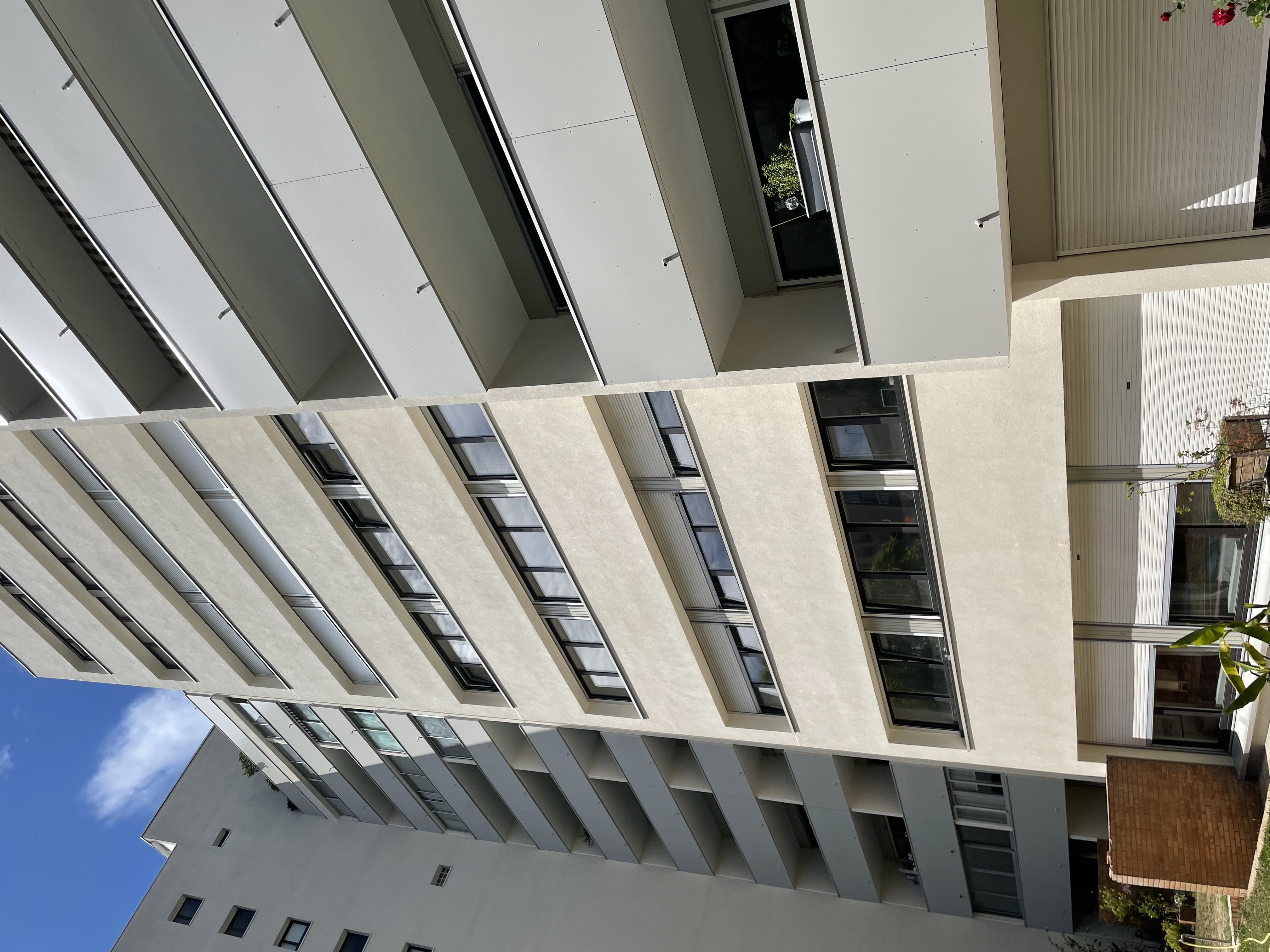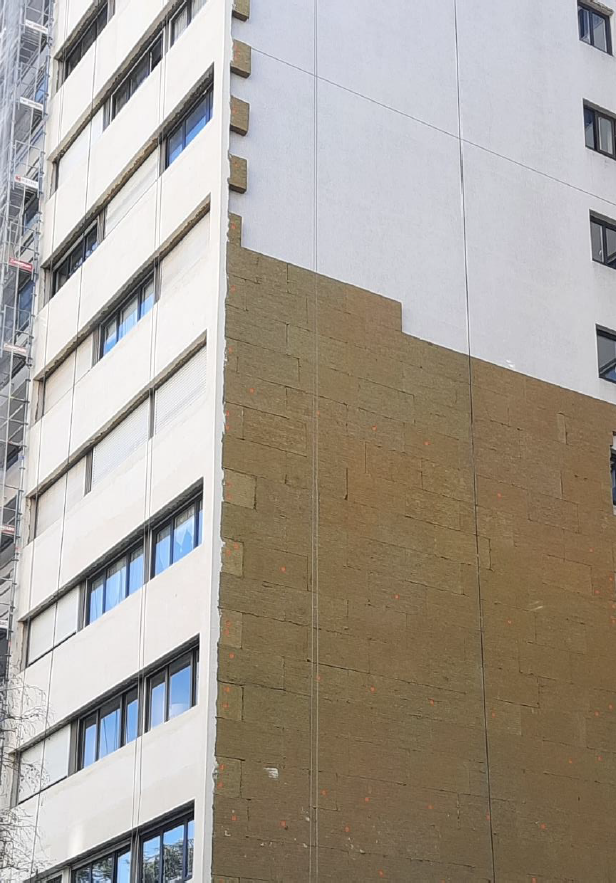 - Fourniture et pose d'ITE laine de roche finition enduite, talochée fin sur toutes les parties pignon et allèges maçonnées hors loggias - RAL 9001 Blanc Cassé