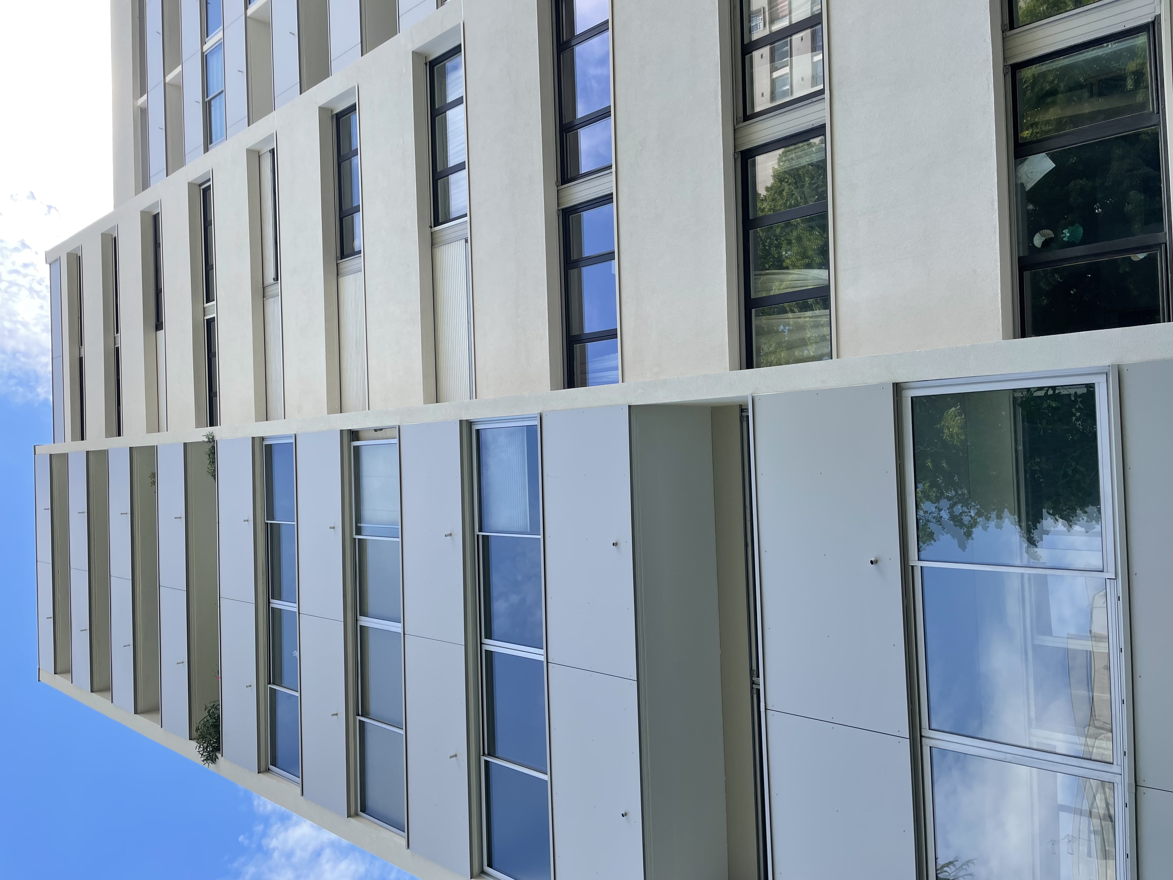 - Fourniture et pose de plaques aluminium Alucobond Plus sur tous les gardes-corps de loggias - RAL 7044 Gris Soie
