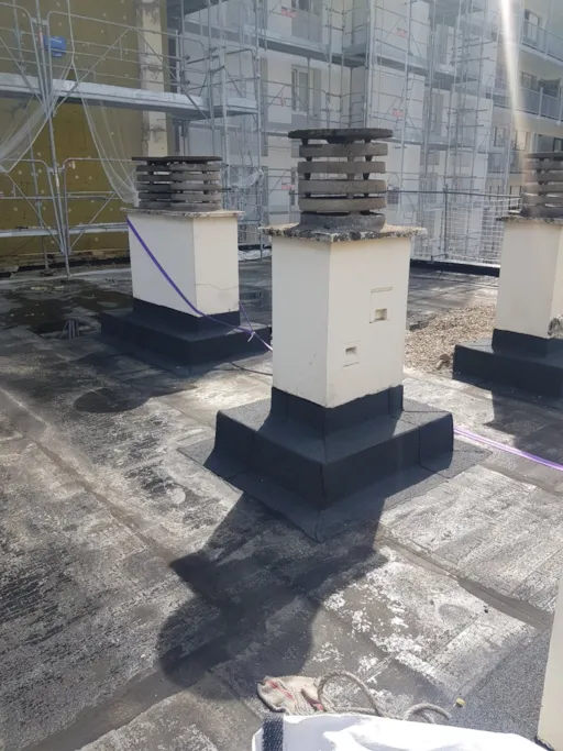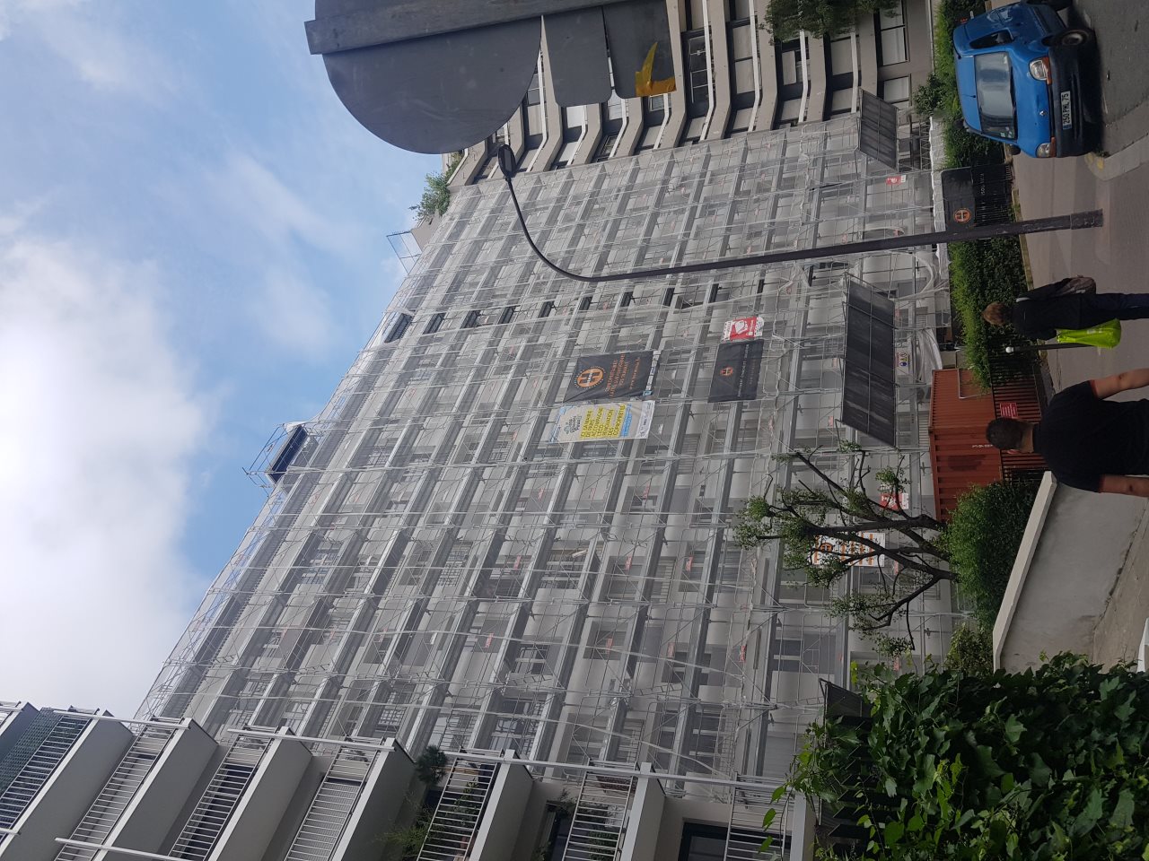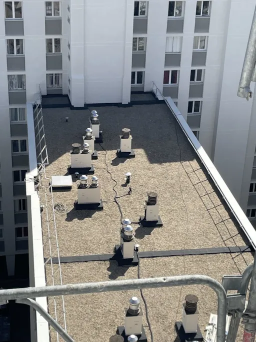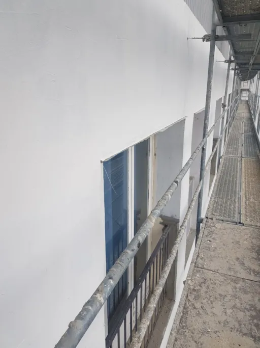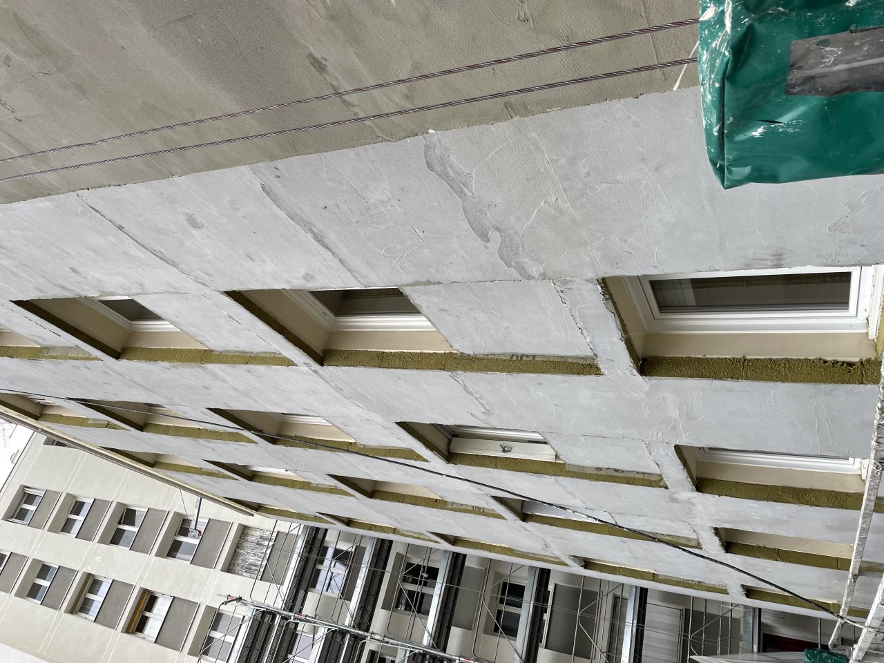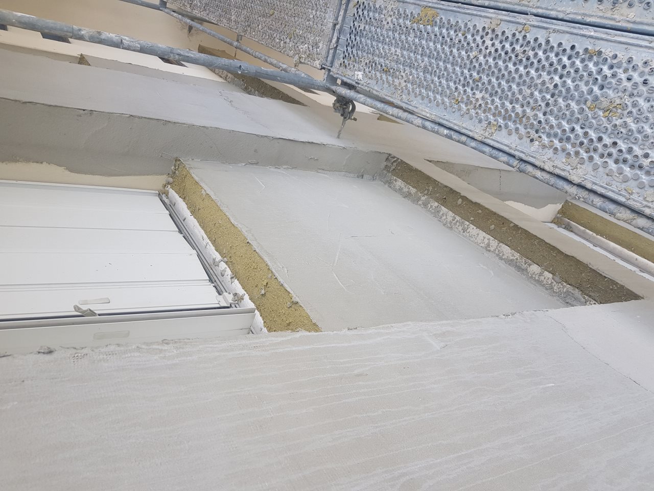 - Isolation par l'extérieur (ITE) de toutes les façades et des pignons, soit environ 5800m², en laine de roche.