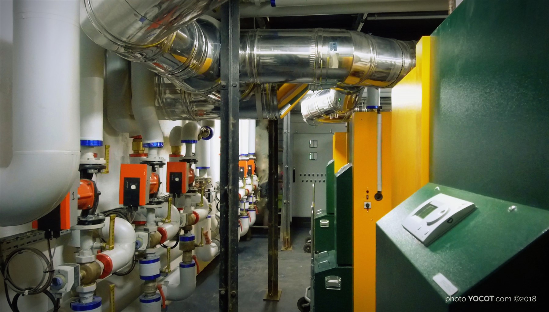 Celle-ci a la particularité d’être indépendante du réseau de chauffage urbain principal. A la place de son ancienne chaufferie au fioul, une chaufferie biomasse comportant 6 chaudières a été installée.