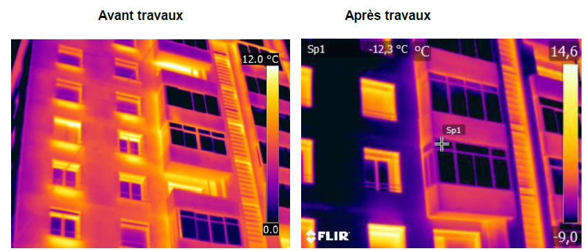Isolation des façades par l'extérieur avec un complexe isolant de 14cm d'épaisseur